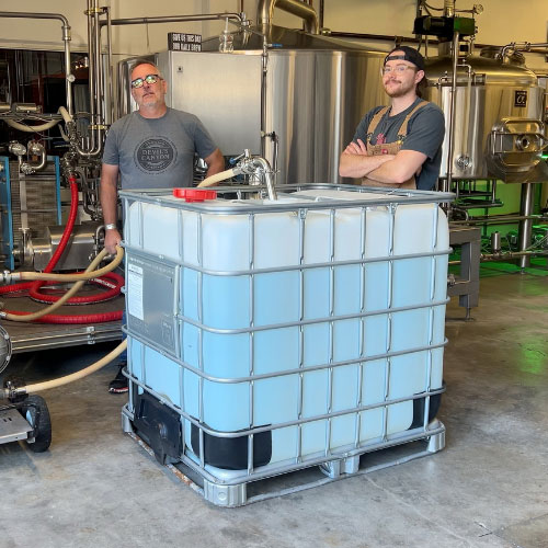 Epic utilizes a multi-barrier water treatment process that includes membrane bioreactor (MBR) filtration — a biological treatment process combined with an ultrafiltration membrane (membranes with a nominal pore diameter of approximately 0.04 microns) — to capture particles and organisms. The water then undergoes additional purification and polishing steps, including granular activated carbon filtration and multiple stages of disinfection using ultraviolet light and chlorine. For certain applications, including this project, additional treatment such as reverse osmosis is used to further refine water quality. The purified water was collected in potable water totes and transported via truck to the brewing facility.