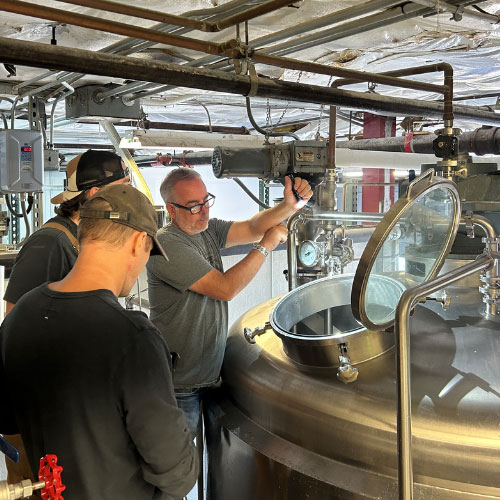 That approach began almost by accident when the team helped dismantle a large hotel slated for demolition and was given access to its unused mechanical systems and equipment after an auction was canceled. The recovered boilers, chillers, pumps, piping and HVAC components became the backbone of the brewery’s original buildout, allowing it to create an unusually robust facility at minimal cost.