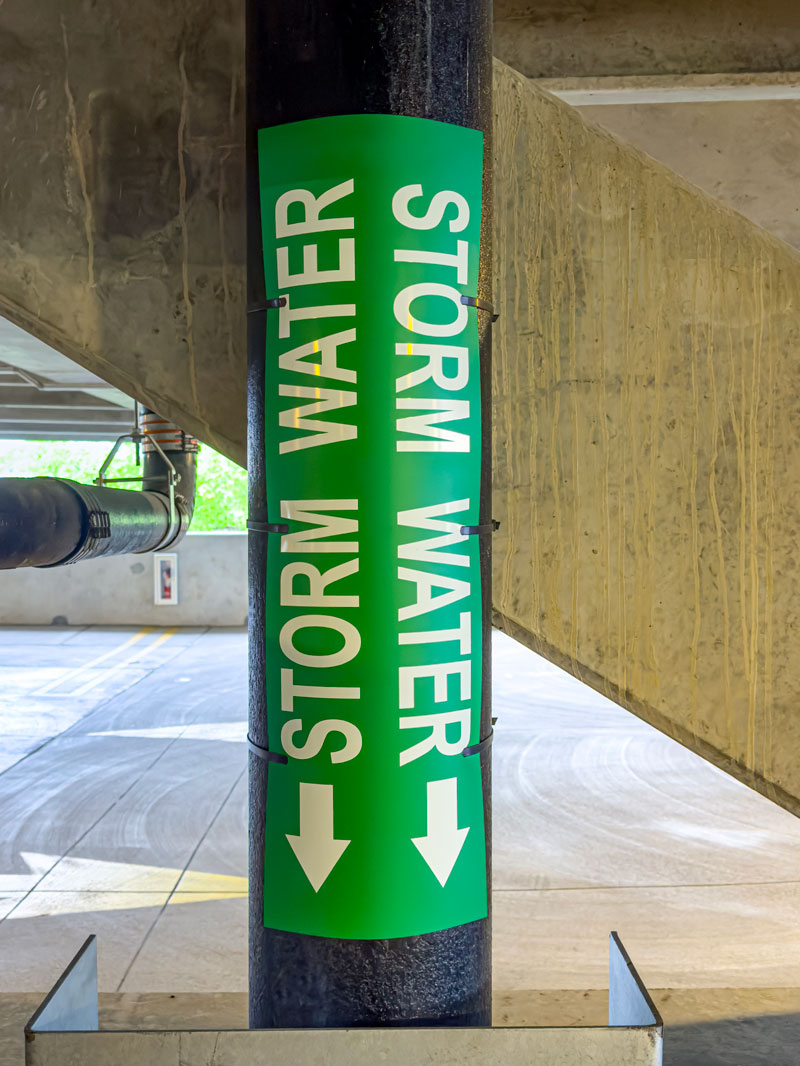 Stormwater pipe installed within a concrete parking garage, structure. | GETTY IMAGES