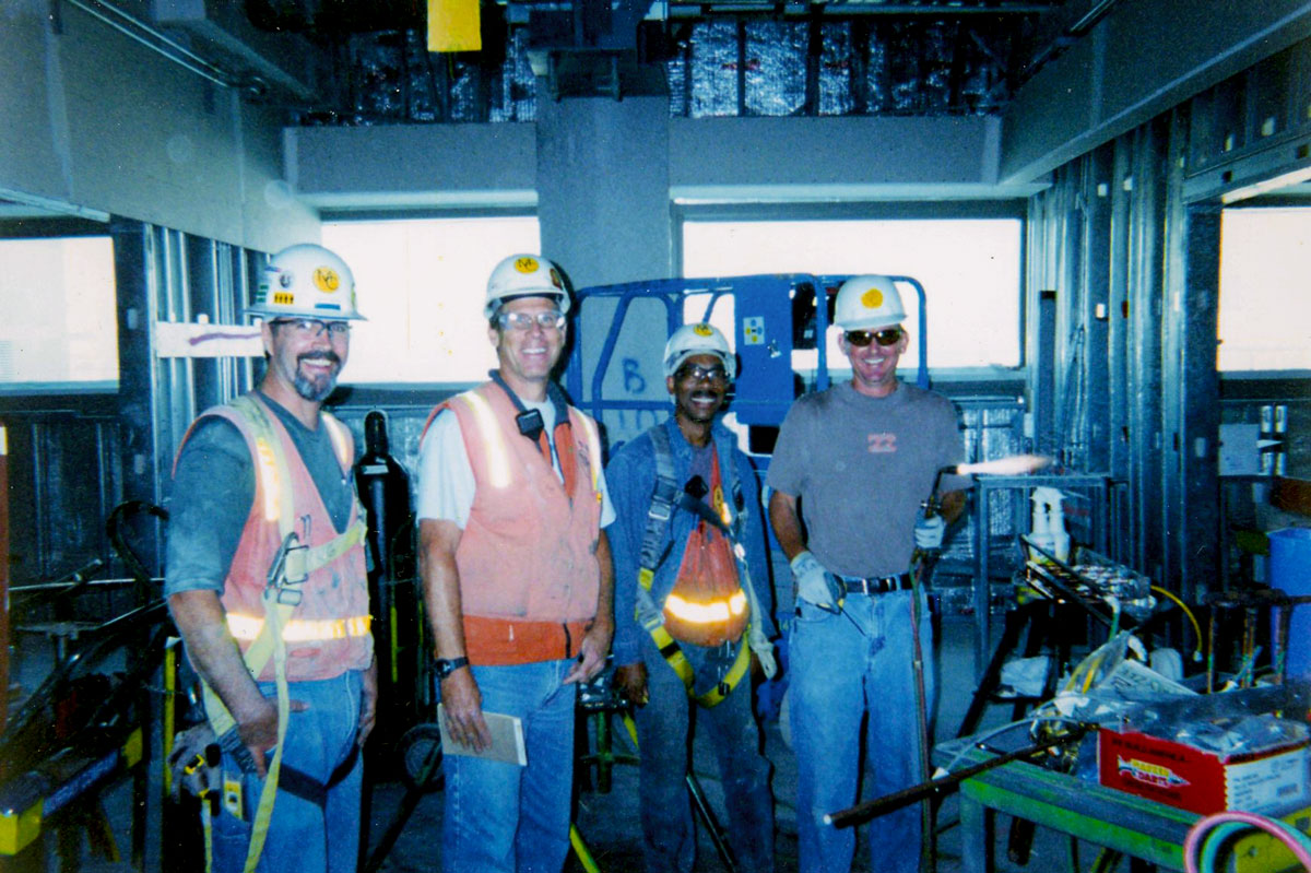 I worked on the hospital alongside other UA tradesworkers for almost one year. My job was to install medical gas lines and supervise other aspects of the construction. I crawled around in the false ceilings, between the walls and under floors, installing fixtures, pipes and gas lines. I was proud of my work. One day, my little brother or should I say younger brother, because he is 6-6, visited me on the job site and we took a picture to commemorate the occasion. At a time before cellphone cameras, I took lots and lots of pictures because I knew how important this project was. I knew it was a hospital, the UCLA Ronald Reagan Hospital, and I knew lives would be saved here.