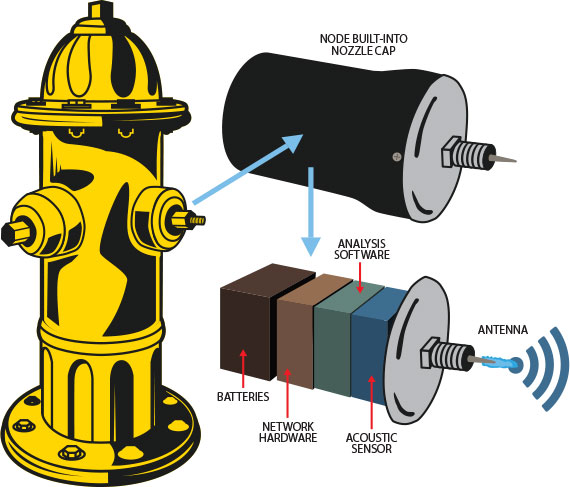 EchoShore® – DX nodes are embedded in a standard fire hydrant cap, which provides leak detection technology to create a wireless monitoring network.