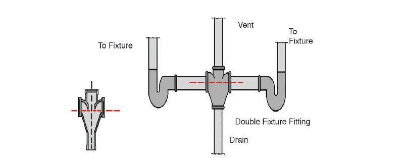 905.6 Common Vertical Pipe. Two fixtures shall be permitted to be served by a common vertical pipe where each such fixture wastes separately into an approved double fitting having inlet openings at the same level.
